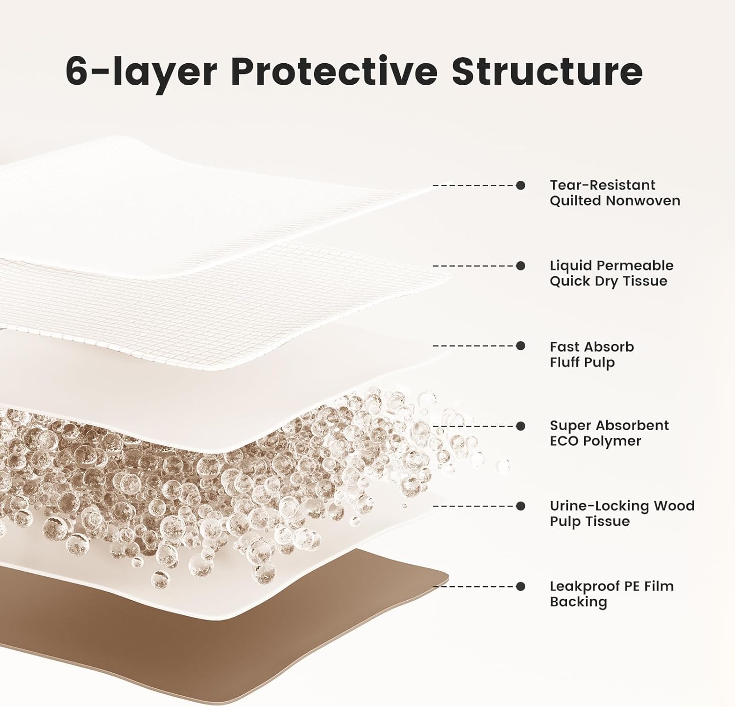 - Anti-slip Design Protects Furniture: The anti-slip dots on the back keep the wee wee pads for dogs won't easily move during use. Unlike adhesive-based puppy pee pads for dogs, this puppy training pads prevent slipping without damaging floors, sofas, or beds. For pet households, this pet pee pads enhances usability while protecting the home furnishings—a truly user-friendly choice.